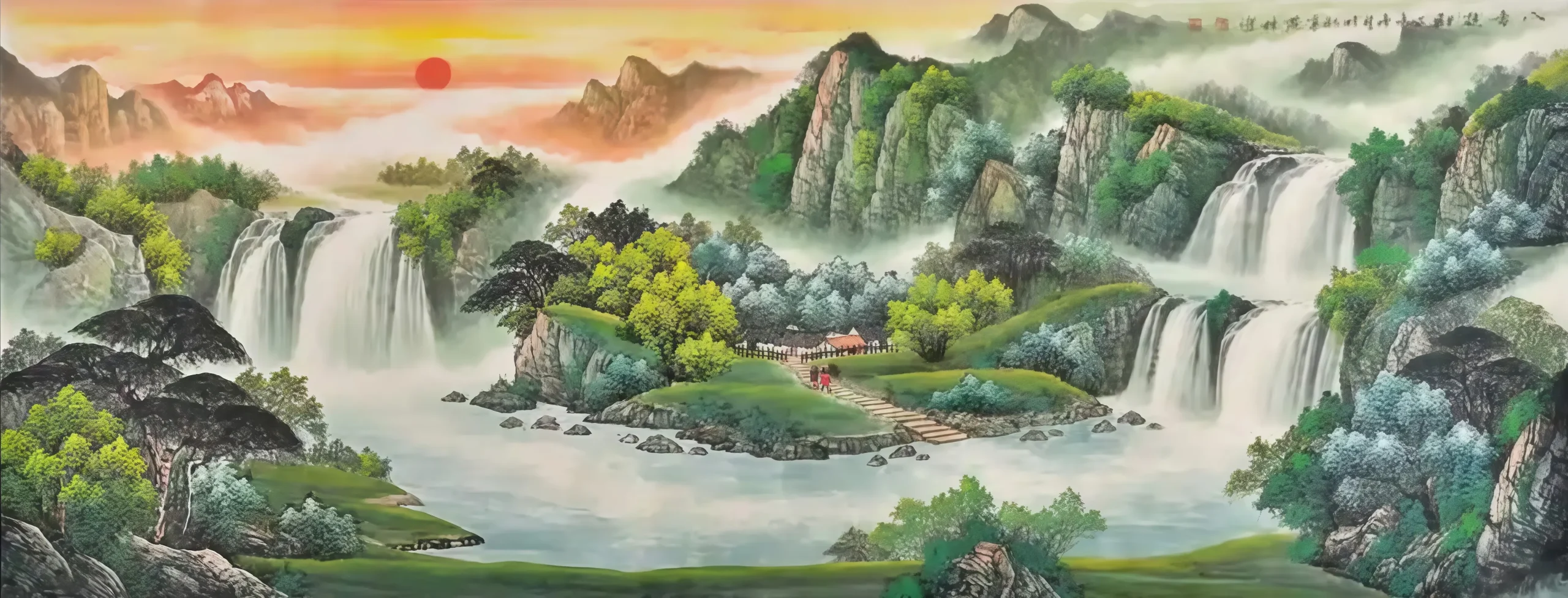Open the floodgates of opportunity with the Wealth from All Directions painting. In Feng Shui, the waterfalls flowing from different sides into a central pool symbolize multiple streams of income converging into your pockets. Ideally suited for entrepreneurs seeking market expansion.