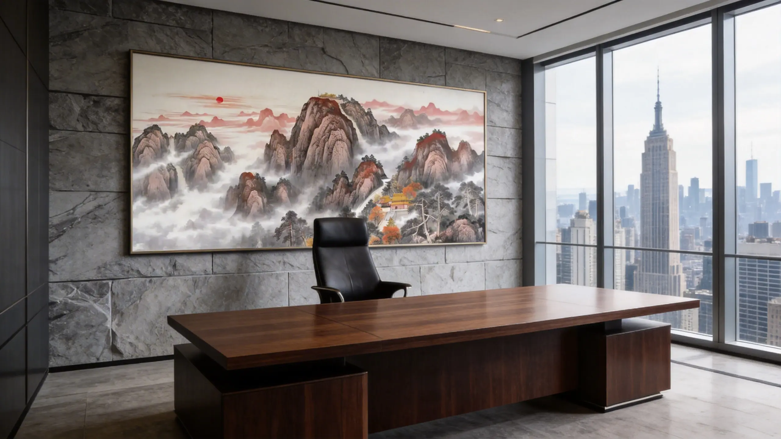 Mount Tai is known as the first of the Five Great Mountains in China, representing supreme authority and stability. Displaying a Mount Tai painting establishes a commanding presence in your office, helping you overcome challenges with ease and solidifying your status as a leader.