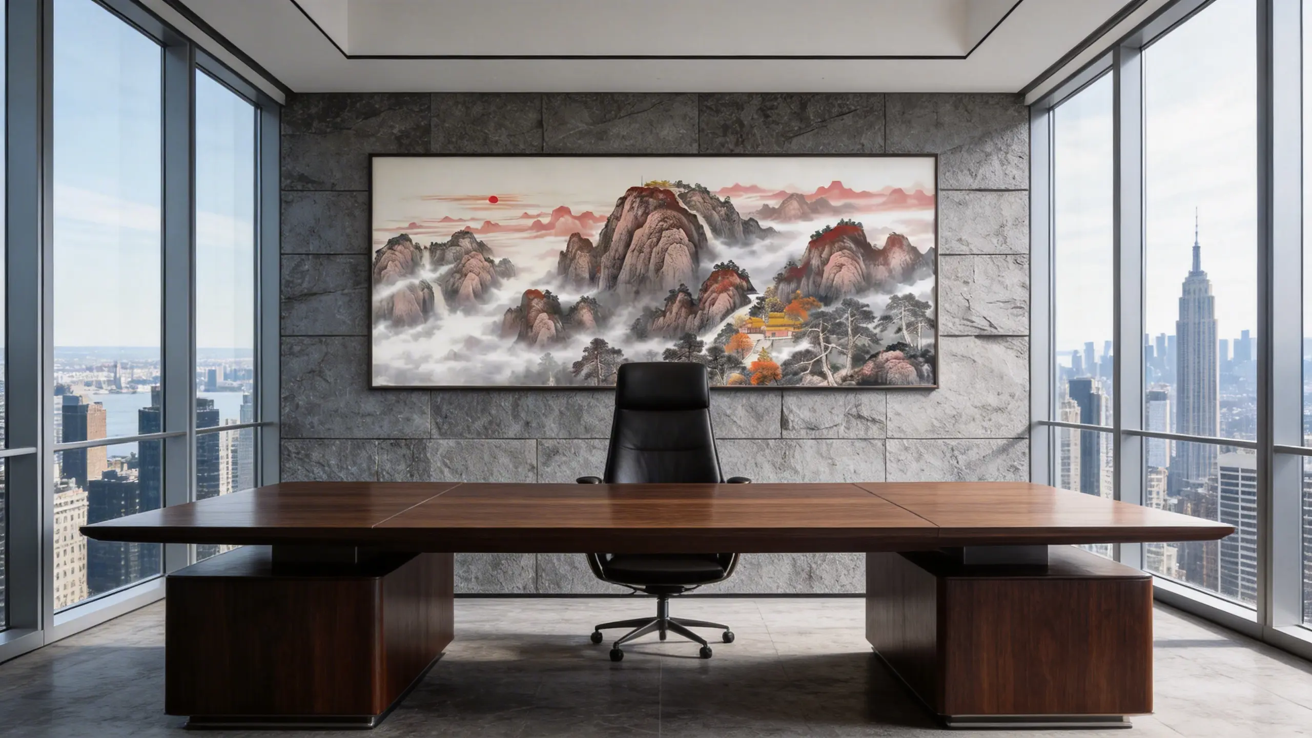 The Majestic Peak: Placed behind your desk, it creates a “Commanding Position,” ensuring you are supported by powerful allies and stable assets.