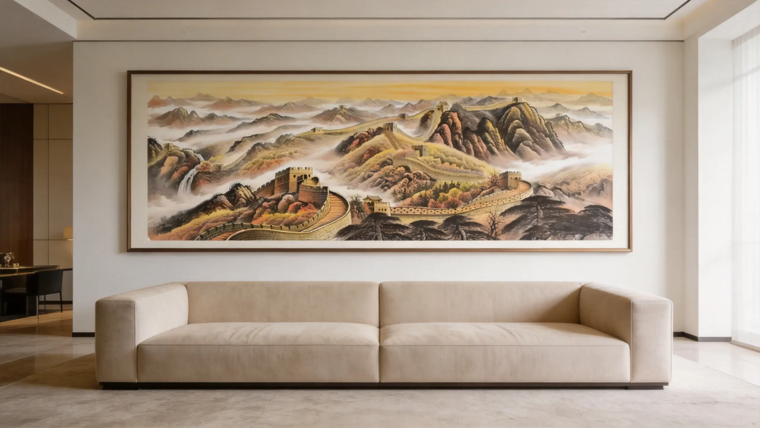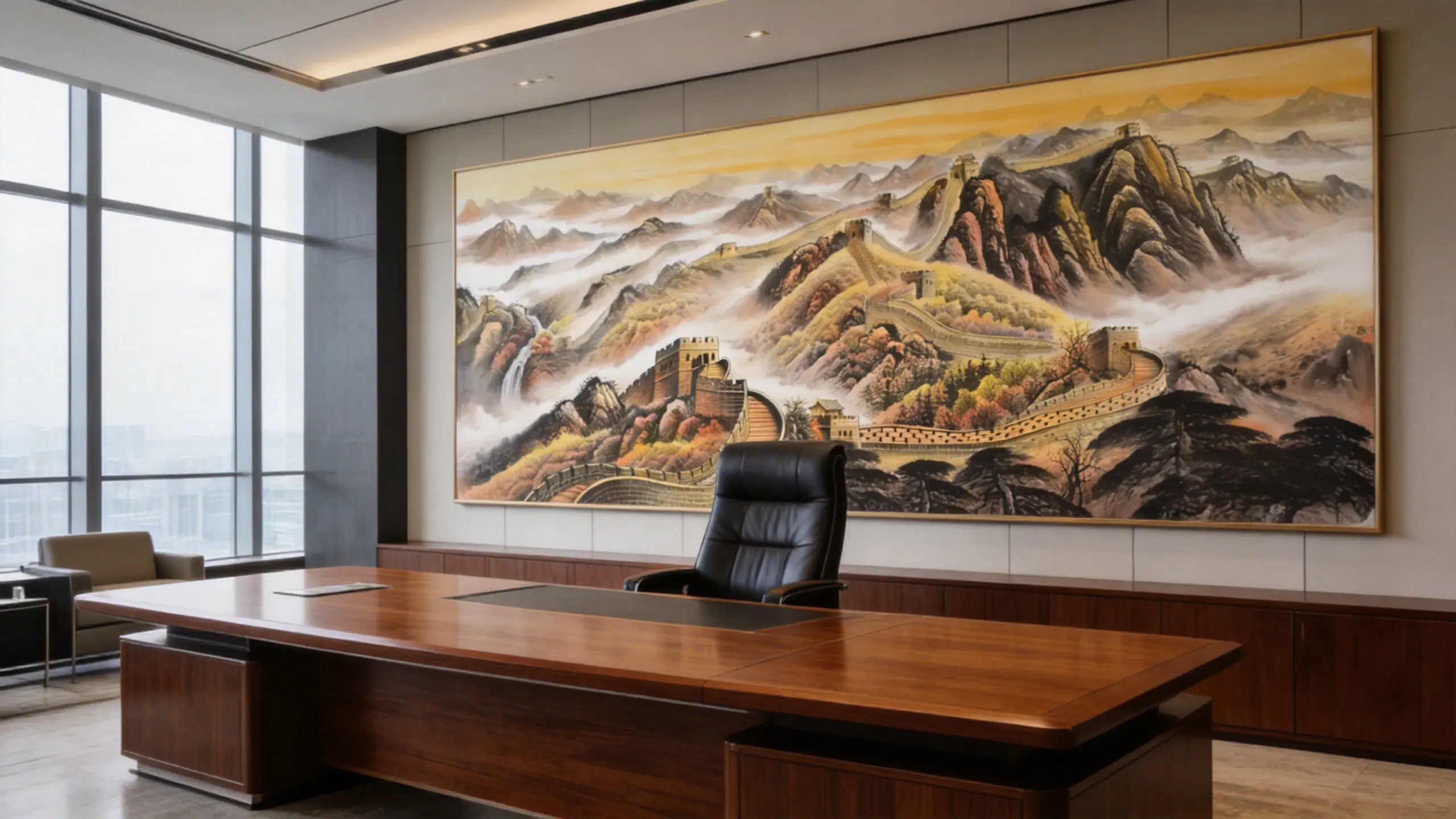 Depicting the majestic dragon-like structure winding through the mountains, The Great Wall art piece embodies endurance and longevity. It is a powerful addition to any executive office, promoting long-term business sustainability and guarding your accumulated fortune against loss.