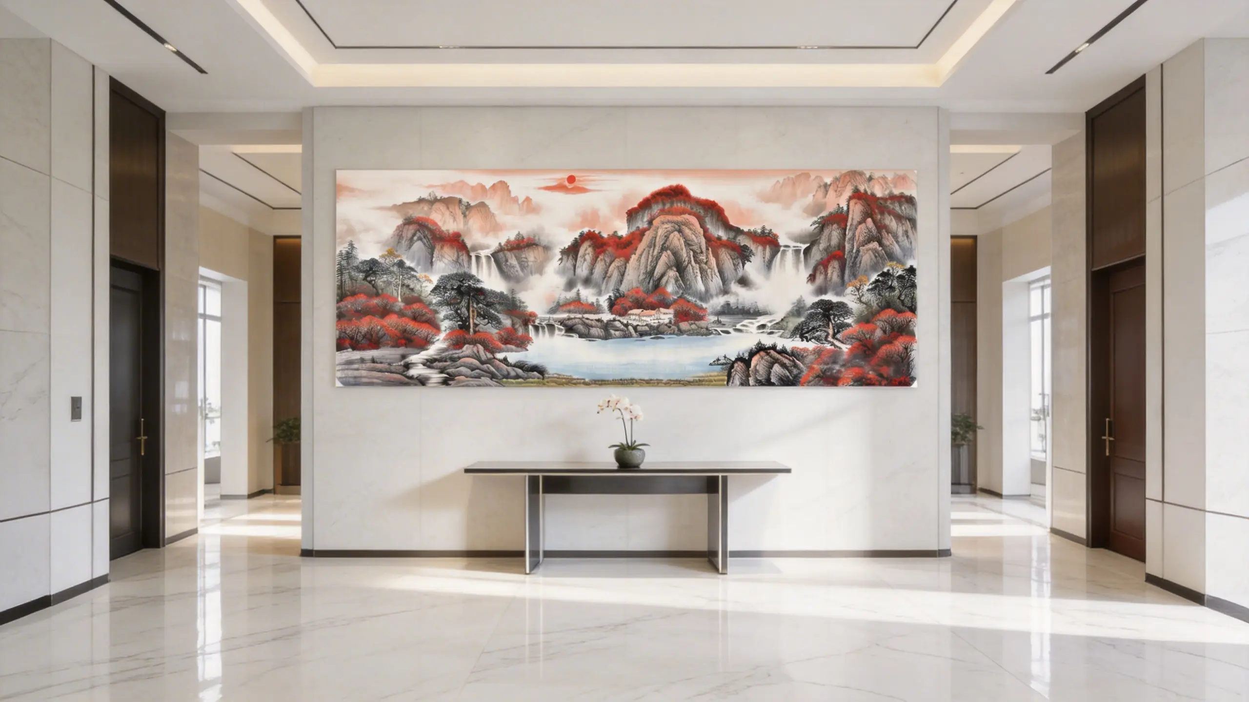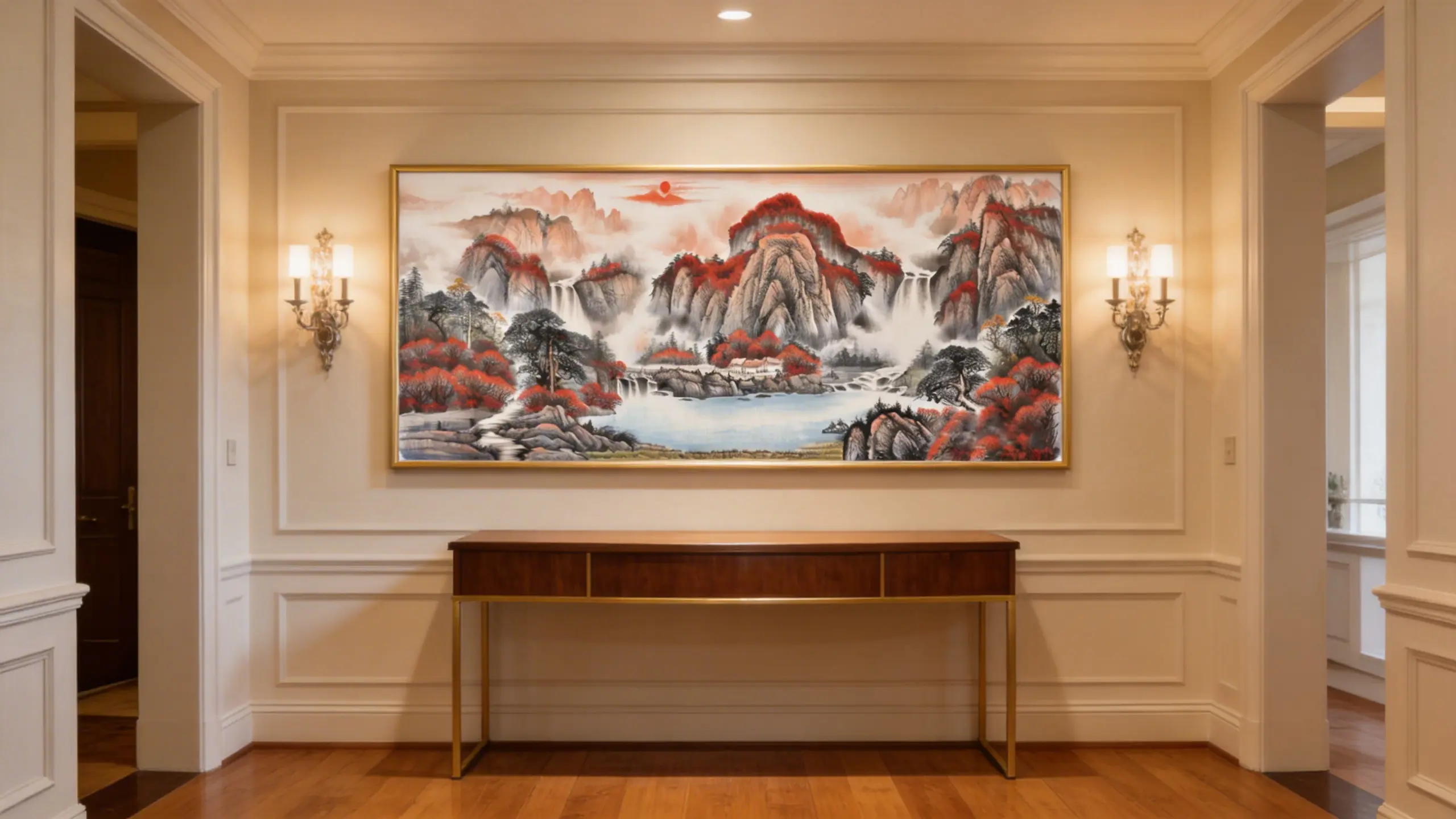 The Treasure Bowl is one of the most popular themes in Feng Shui for attracting wealth. The landscape is shaped like a basin to ‘hold’ gold and treasures, symbolizing the accumulation of riches. Hang this facing into your room to invite continuous financial growth and abundance.