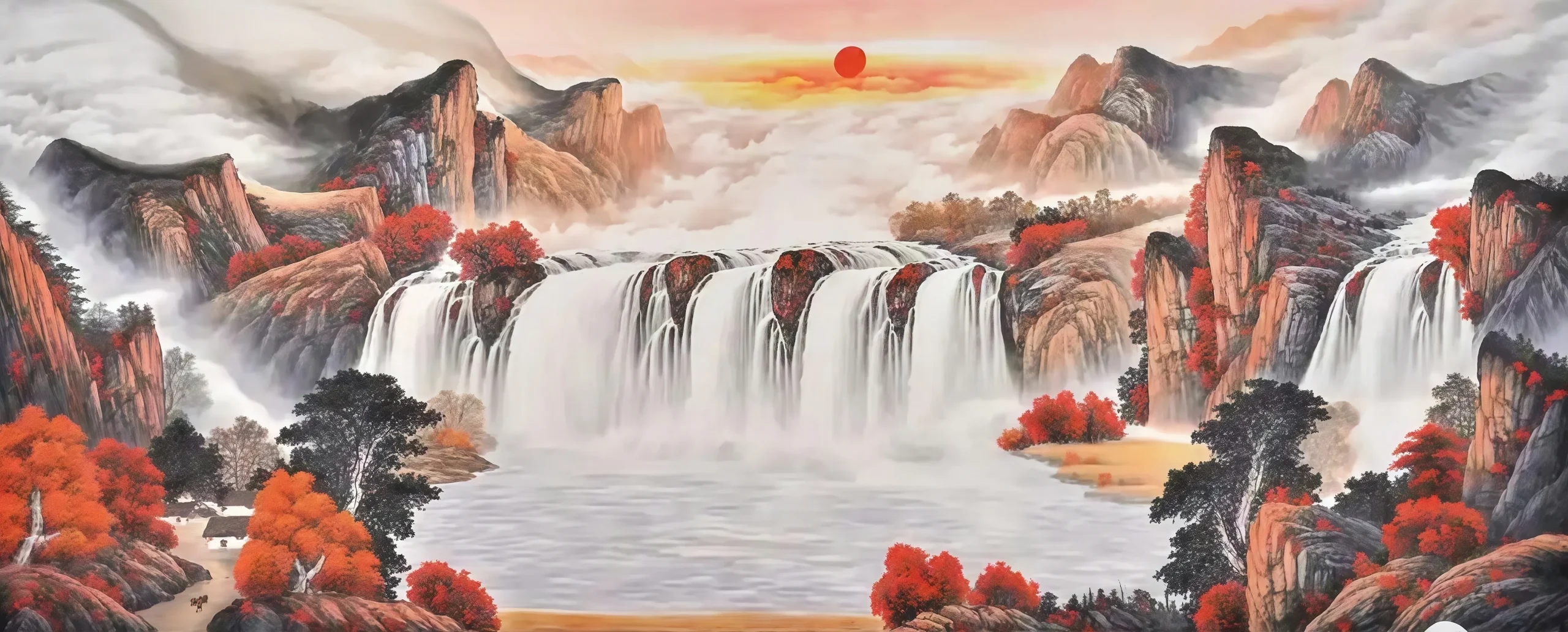 In the world of high-net-worth Feng Shui, water is the literal embodiment of Wealth. This masterpiece, “Wealth from All Directions,” is not just a landscape; it is a blueprint for financial expansion.