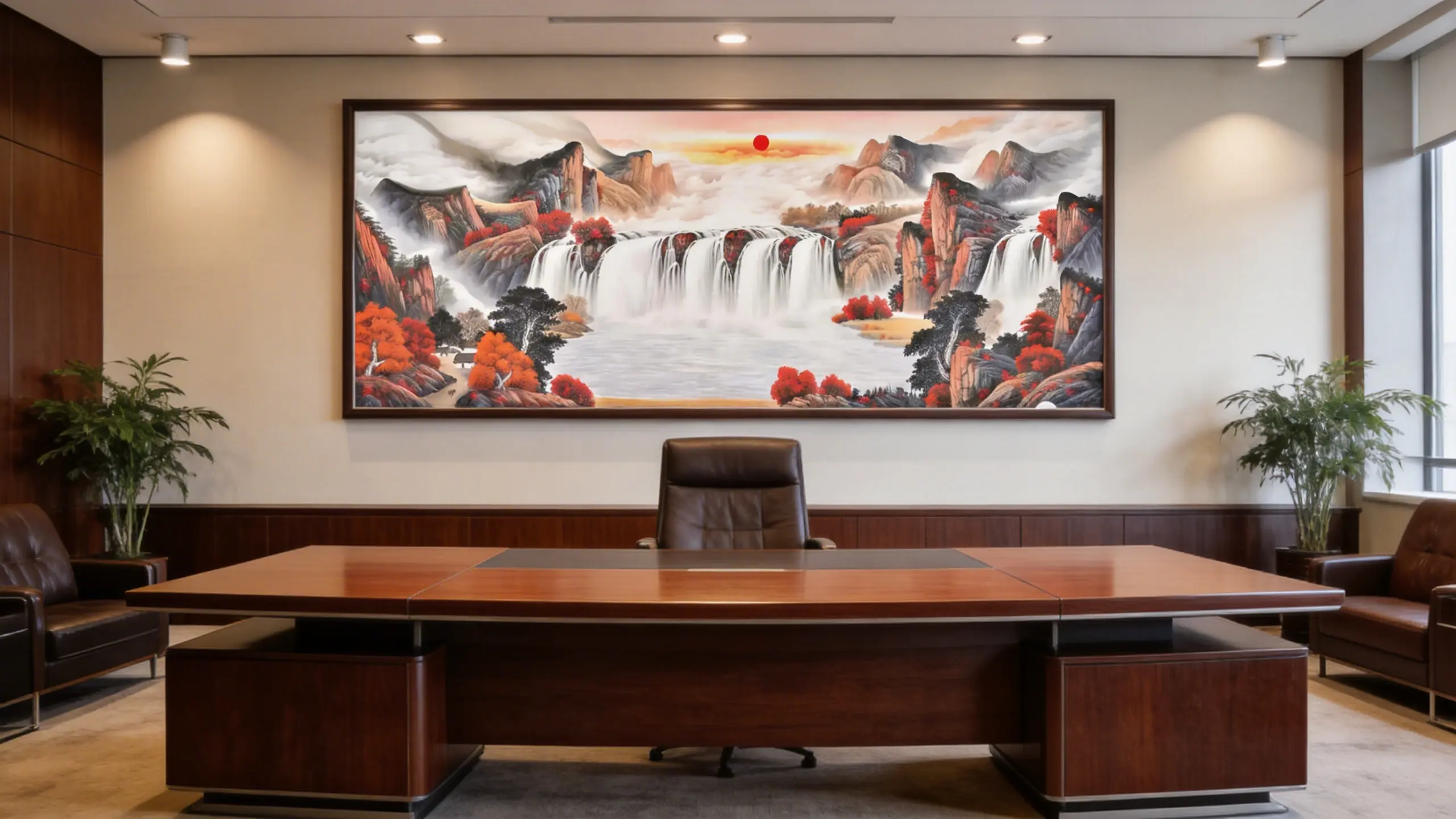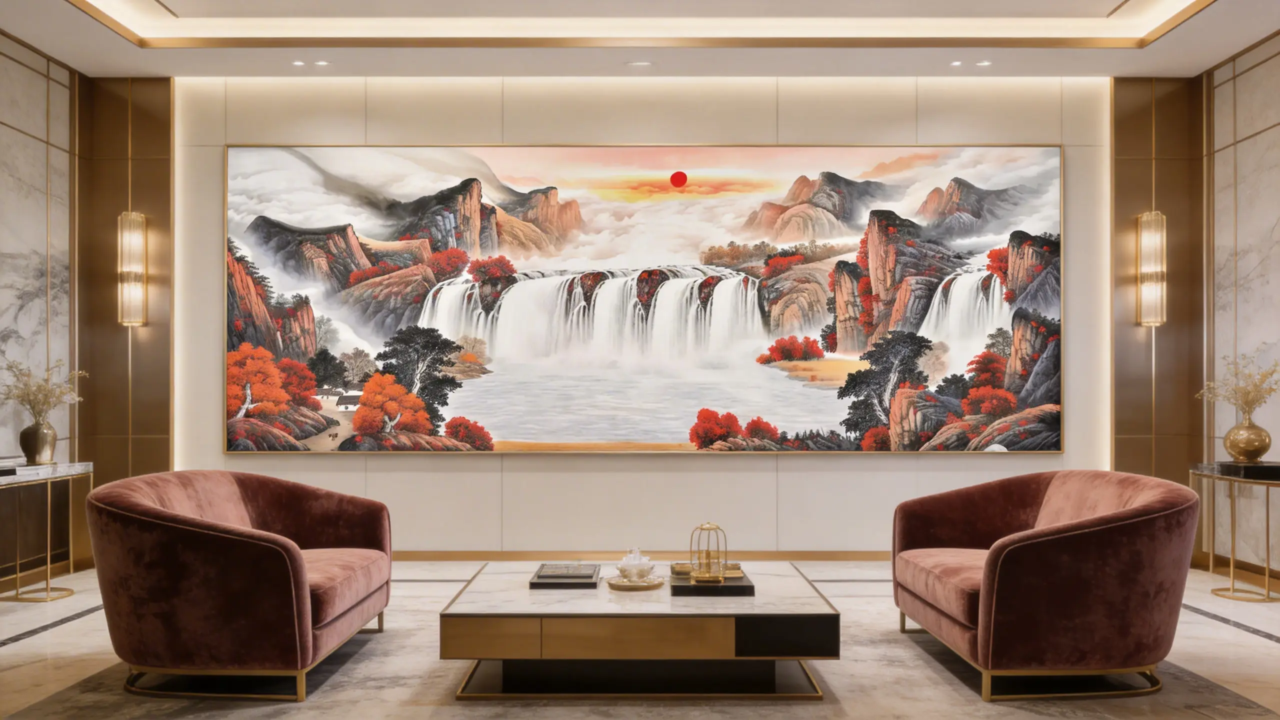 Waterfalls from all sides symbolize wealth arriving from every direction.